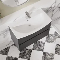 Nuie Havana 800mm Graphite Grey Woodgrain Wall Hung 2 Drawer Vanity Unit with Basin