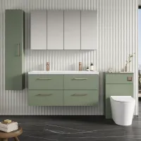 Nuie 1200mm Satin Green Wall Hung 4-Drawer Vanity Unit With Double Ceramic Basin