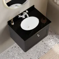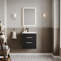 Nuie Arno 600mm Soft Black Wall Hung Vanity Unit with 2 Drawers & Thin-Edge Basin