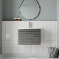 Nuie Athena 600mm Anthracite Woodgrain Wall Hung Single Drawer Vanity Unit With Curved 1 Tap Hole Basin