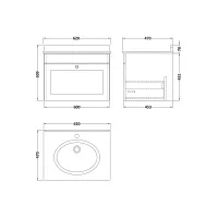 Nuie Athena 600mm Wall Hung Single Drawer Vanity Unit with 1 Tap Hole Basin