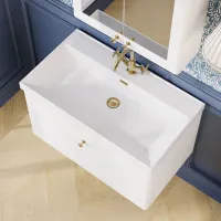 Flume 800mm 2- Drawer Wall Hung Unit with Traditional Fireclay Basin - 0 Tap Holes