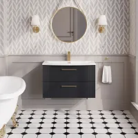 Nuie 800mm Soft Black Part Fluted Wall Hung 2-Drawer Vanity Unit & Curved Basin With Chrome Handles