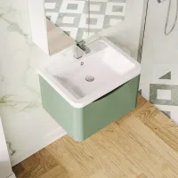 Nuie Lunar 600mm Satin Green Wall Hung 1 Drawer Vanity Unit With Ceramic Basin