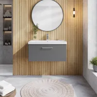 Nuie Arno 800mm Satin Grey 1 Drawer Wall Hung Vanity Unit with Basin