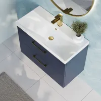 Nuie 800mm Midnight Blue Wall Hung 2-Drawer Vanity Unit With Basin
