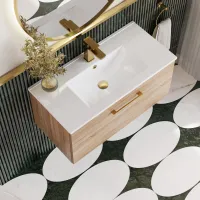 Nuie 800mm Bleached Oak Wall Hung 1-Drawer Vanity Unit With Basin & Soft Close Drawer