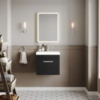 Nuie Athena 500mm Charcoal Black Wall Hung Single Drawer Vanity Unit With 1 Tap Hole Basin