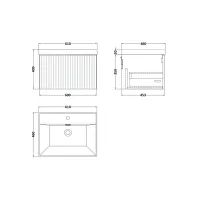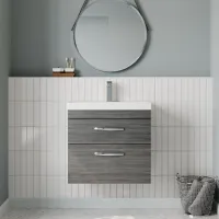 Nuie Athena 600mm Anthracite Woodgrain 2 Drawer Soft Close Wall Hung Vanity Unit With Basin