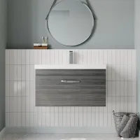 Nuie Athena 800mm Anthracite Woodgrain Wall Hung Single Drawer Vanity Unit Including Basin