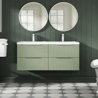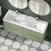 Hudson Reed Fluted 1200mm Satin Green Wall Hung 4-Drawer Vanity Unit with Double Basin