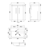 Arley Direction 500mm 2 Door Gloss White Wall Hung Vanity Unit With Basin