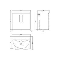 Hudson Reed Juno 600mm Metallic Slate Wall Hung 2 Door Vanity Unit With Curved Basin & 1 Tap Hole