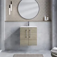 Nuie Arno 500mm Solace Oak Wall Hung 2-Door Vanity Unit With Basin