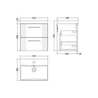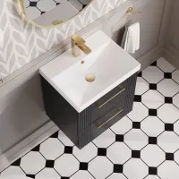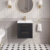 Nuie Deco 500mm 2 Drawer Soft Black Wall Hung Vanity Unit With Thin Edge Basin