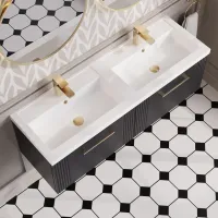 Nuie Arno 1200mm Anthracite Woodgrain Wall Hung 4-Drawer Double Polymarble Basin Vanity Unit