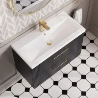 Nuie 800mm Soft Black Part Fluted Wall Hung 2-Drawer Vanity Unit & Basin with Chrome Handles