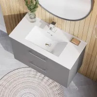 Nuie Deco 500mm 1 Drawer Satin Grey Wall Hung Vanity Unit With Thin Edge Basin