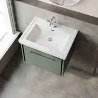 Nuie Deco 800mm Satin Green Wall Hung Single Drawer Vanity Unit with Thin-Edge Basin with Chrome Handle