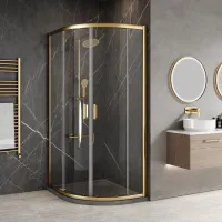 Nuie 1200mm x 800mm Brushed Brass Offset Quadrant Sliding Shower Enclosure