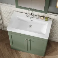 Nuie Classique 800mm Satin Green Floor Standing 2-Door Vanity Unit with 3 Tap Hole Basin