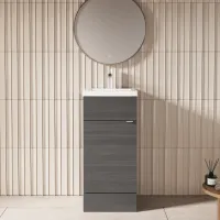 Hudson Reed Fusion 500mm Gloss Grey Floor Standing 2 Door Vanity Unit & Ceramic Basin