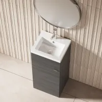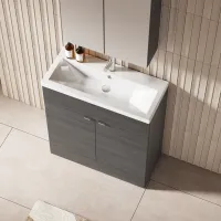 Nuie Arno 800mm Anthracite Woodgrain Floor Standing 2-Drawer Vanity Unit with Basin