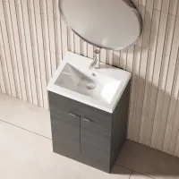 Nuie 600mm Satin Grey Floor Standing 2 Door Vanity Unit With Basin, Soft Close Doors