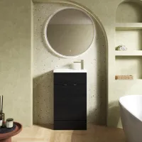 Nuie Classique 500mm Soft Black Floor Standing 2 Door Vanity Unit With 3 Tap Hole Basin