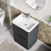 Nuie Arno 600mm Floor Standing 2-Drawer Vanity Unit with Curved Basin