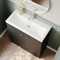 Nuie Athena 800mm Charcoal Black Floor Standing 2 Drawer Vanity Unit With Thin-Edge 1 Tap Hole Basin