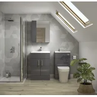Hudson Reed Juno 500mm Floor Standing Graphite Grey Woodgrain Vanity & 1 Tap Hole Basin