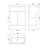 Nuie Arno 600mm Floor Standing 2-Drawer Vanity Unit with Basin