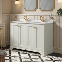 Hudson Reed Old London 1250mm Floor Standing 4 Door Double Basin Vanity Unit With Double Marble Top Basin