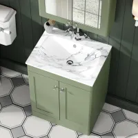 Kivo 600mm 2-Door Floor Standing Unit with a Traditional Fireclay Basin - 3 Tap Holes