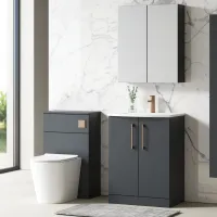 Nuie Classique 600mm Satin Grey Floor Standing Vanity Unit With 3 Tap Hole Basin