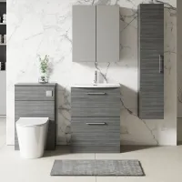 Nuie Choice Axis 550mm Gloss Grey Floor Standing 2 Door Vanity Unit with Rectangular Basin