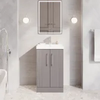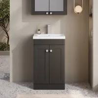 Nuie Deco 500mm Satin Grey Floor Standing 2 Door Vanity Unit & Basin With Chrome Handles
