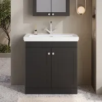 Nuie Arno 800mm Charcoal Black Floor Standing 2-Drawer Vanity Unit with Mid-Edge Basin