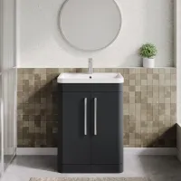 Nuie 600mm Anthracite Woodgrain Floor Standing 2-Door Vanity Unit With 1 Tap Hole Basin