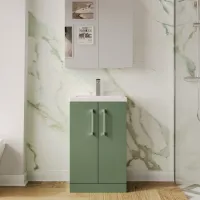 Nuie 500mm Satin Green Floor Standing 2-Door Vanity Unit With Polymarble Basin & Soft Close Doors