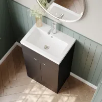 Nuie Arno 600mm Anthracite Woodgrain Floor Standing 2-Door Vanity Unit with Basin