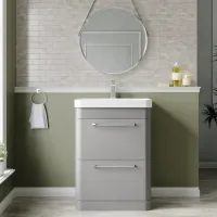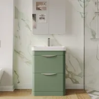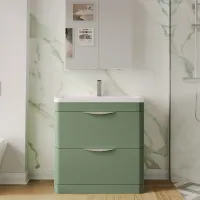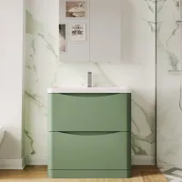 Nuie Lunar 800mm Satin Green Floor Standing 2 Drawer Vanity Unit With Ceramic Basin