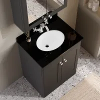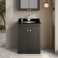Nuie Arno 600mm Charcoal Black Floor Standing 2-Door Vanity Unit with Basin