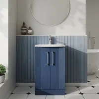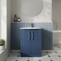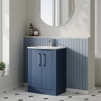 Nuie 600mm Midnight Blue Floor Standing 2-Drawer Vanity Unit & Basin With Handles