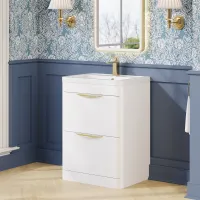 Hudson Reed Bexley 600mm Pure White Floor Standing 1 Drawer Vanity Unit with 3 Tap Hole Basin