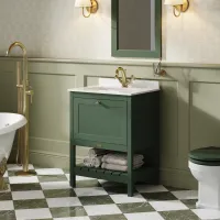 Hudson Reed Old London 600mm Hunter Green 2-Door Floor Standing Vanity Unit With Fireclay Basin