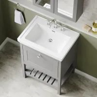Nuie Arno 600mm Satin Grey Floor Standing 2 Drawer Vanity Unit & Basin With Handles