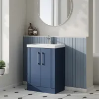 Hudson Reed Fluted 500mm Satin Blue Floor Standing 2-Door Vanity Unit With Basin
