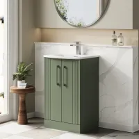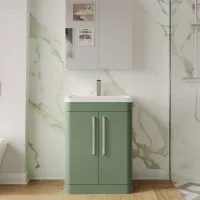 Nuie Parade 600mm Satin Green Floor Standing 2 Door Vanity Unit With Polymarble Basin